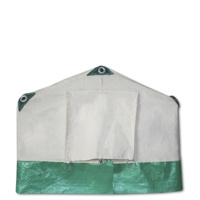 Este fabricat din pânză brută impermeabilă. 4 dintre stâlpi au 160 cm și 2 dintre ei – 230 cm. Pe partea de jos o prelată de nailon de 35 cm lățime.