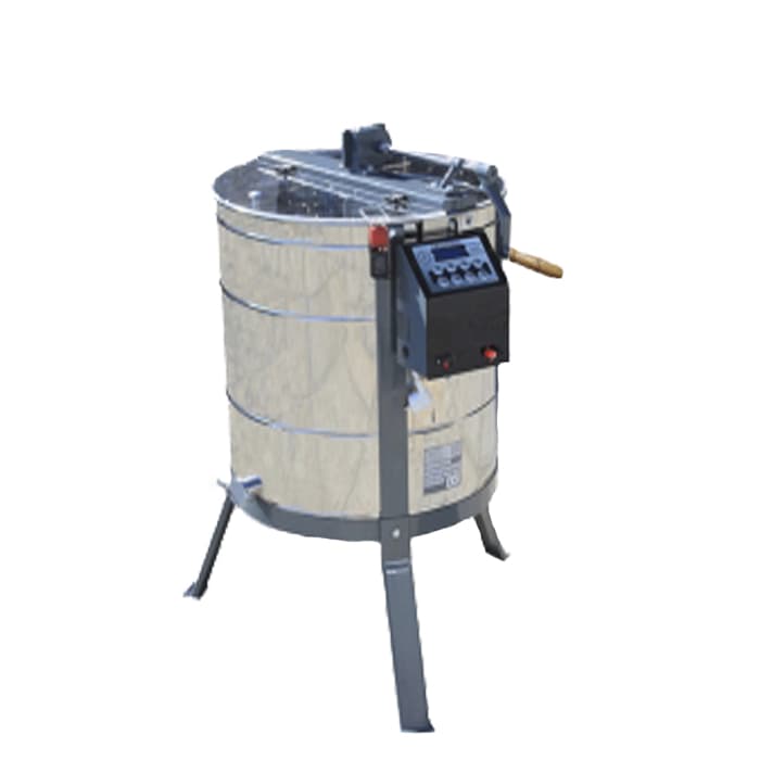 Медогонка Techtron электро на 6 рамок. Сделана в Сербии. Высота центрифуги: 1100 мм. Диаметр бочки: 800 мм. Изготовлена из нержавеющей стали AISI 304. В том числе и корзина изготовлена из нержавеющей стали. Привод на центрифуге может быть ручной с использованием коробки передач с тормозом, либо может управляться аналоговой автоматикой. Система редуктора FERLAUF означает непрерывное вращение корзины, даже если редуктор не вращается. Ножки центрифуги легко собирать и разбирать.